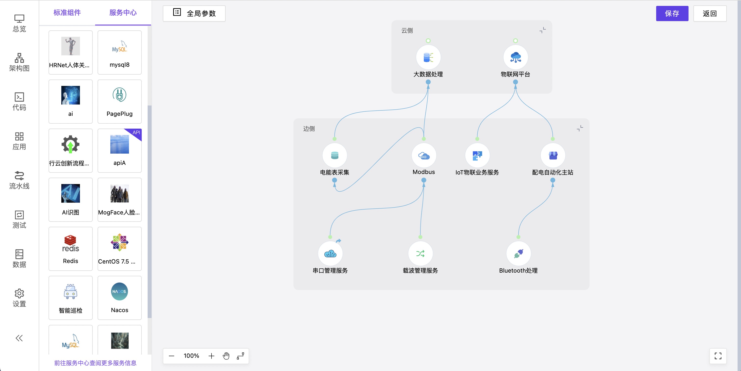 面向应用开发的可视化编排系统,进行软件架构设计,快速构建云边一体化应用。